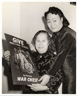 In his book, Americans First: Chinese Americans and the Second World War, K. Scott Wong describes how Madame Chiang Kai-shek’s tour of the United States helped improve popular opinion of the Chinese and Chinese-Americans. Mayling Soong was born in China to a powerful and wealthy family familiar with the West, and attended Wellesley College in Massachusetts; after marrying Chiang Kai-shek, she became more involved in Chinese social and political affairs. The couple was famous, respected, and admired: In 1938 Chiang Kai-shek and Madame Chiang Kai-shek were named Time’s “Man and Wife of the Year” (Wong 73). When Madame Chiang Kai-shek returned to the United States in 1942, the response from the American public was overwhelmingly positive (Wong 95); after surprising the House and Senate with her fluent English and an eloquent, moving speech, she was described far and wide in both languages as the modern ideal of the Chinese woman. In San Francisco Chinatown, she was warmly welcomed, and even non-Chinese stores posted admiring advertisements in an attempt to attract Chinese-American customers (Wong 107), demonstrating the improvement of the social status of the Chinese. Because of her reputed intellect, charm, and beauty, public sentiment towards the Chinese improved via association.