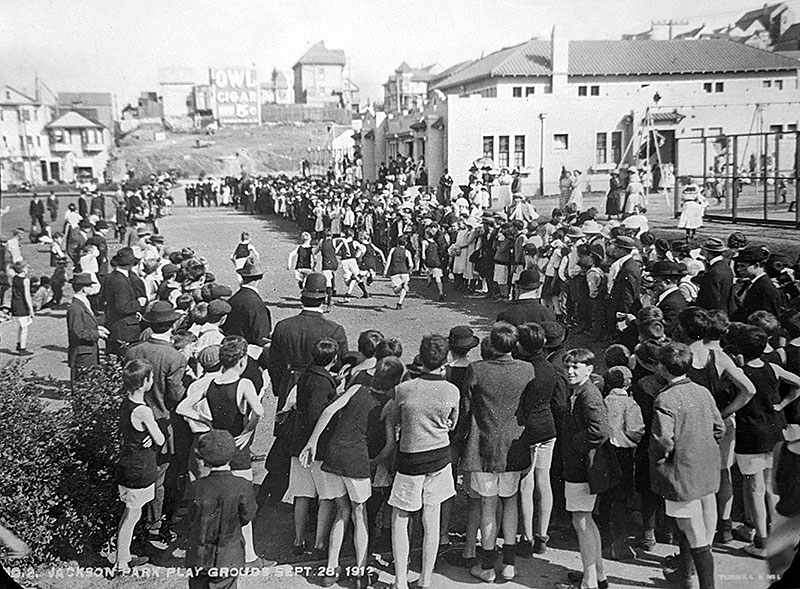 The lots that are products of this unique meeting are generally small, about 25 x 100 being the average size. Like the streets and blocks, they are placed without regard for the spectacular view that lies across the city from them. This simple fact gives a clue to the nature and background of the hill. In fact, it appears as if the excellent weather and spectacular view were only after-thoughts to the people of Potrero.