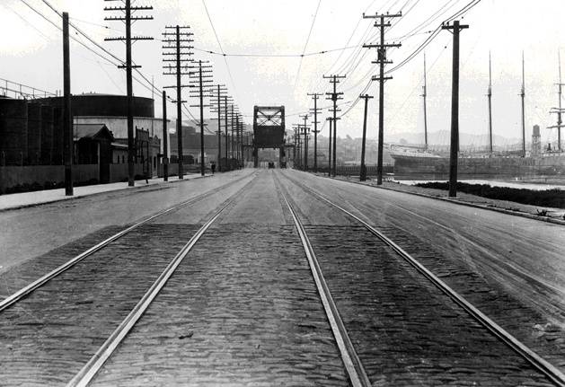 Suspense mounted as we approached the Islais Creek bridge. Would we make it before the drawbridge went up? To wait for the drawbridge to slowly rise, the vessel pass through and finally gently lower itself to street level guaranteed a late arrival at one’s destination. In l937 I went to work in an office in the Merchants Exchange Building in the Financial District. I took the #l6, which took me closest to Montgomery Street, every day. If I happened to arrive a little late I could count on the building’s elevator starter asking me whether or not the bridge had been up.