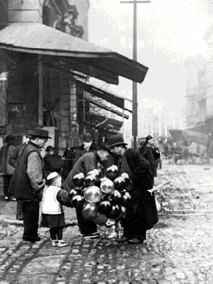 A Jewish merchant sells balloons in Chinatown in this Arnold Genthe photograph.