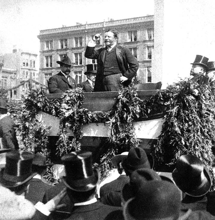 Teddy Roosevelt speaking in San Francisco, 1903.
