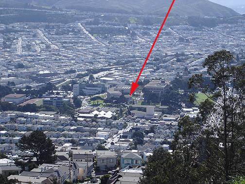 City College campus site in background, Jan. 15, 1932, looking south from Yerba Buena and Monterey.
