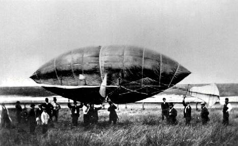Early blimp, c. 1915, attempts to gain altitude over Ocean Beach