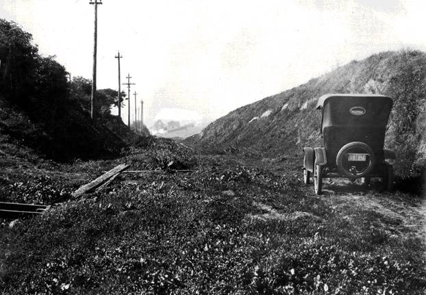 February 18, 1926: View west near today's Farmer's Market site to the proposed Alemany Blvd, from the Ocean Shore Railroad station.