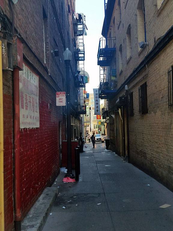 Ross Alley and Waverly Place were the zones where "parlor houses," elite bordellos specializing in Chinese sex slaves, flourished in the late 19th and early 20th centuries. Decked out in teakwood paneling and stocked with hand-embroidered silk cushions, colorful hangings, and plush couches, these establishments featured the most beautiful and well-trained girls culled from the yellow slave trade. The resident courtesans cost as much as a dollar, at a time when their lower-class competitors in the cribs could be had for twenty-five to fifty cents.