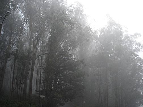 Fog swirls among eucalyptus trees in Sutro Forest, 2010.