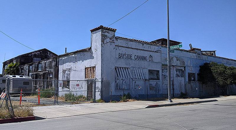 The ruins of the 1906 Bayside Canning Company at the edge of the Alviso Marina County Park, 2021.