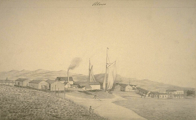 Beginning in the 1840s, the dock at Alviso served as Santa Clara County’s access to the San Francisco Bay. From this port, passengers boarded steamboats loaded with goods and produce bound for San Francisco and points beyond. In the early days of the California gold rush, San Jose provided hay, lumber, and large amounts of food though this port.
