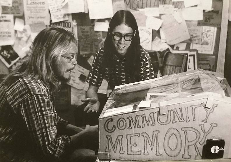 I’ve got a GREAT job. I can walk to work through a pretty neighborhood to work with intelligent people on a project which is both personally creative and socially useful. The job has many different facets and the twenty four week is flexible—leaving free time for my own pursuits. All this and more, for a thou sand dollars a month. I'm a computer programmer with a small nonprofit called Community Memory (CM) which has created a public access electronic bulletin board in Berkeley, California.