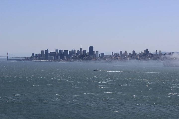 View of San Francisco from Angel Island, June 2014, fog engulfing Alcatraz at right.