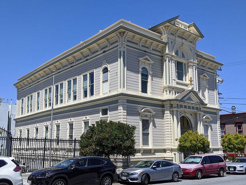 There are many historic buildings throughout the Mission neighborhood; this is the St. Charles Elementary School at 18th and Shotwell.