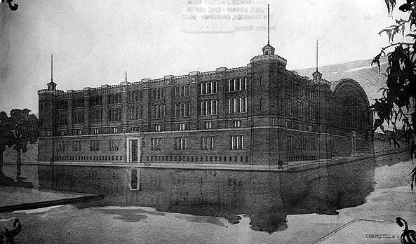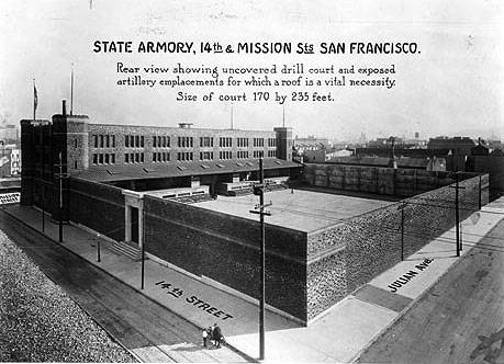 The National Guard Armory was constructed in 1909 above an underground creek, to ensure besieged National Guardsmen would have drinking water. Its existence is testimony to the concerns of society's leaders in the early part of this century to maintain armored facilities to keep social peace at a time of widespread class war. The Guard vacated the building in 1976. After a long series of contested proposals for its contemporary use, including conversion to a movie studio, housing, or dot-com office space, the building was finally sold in 2007 to a pornography company, Kink.com, who uses it as a film studio.