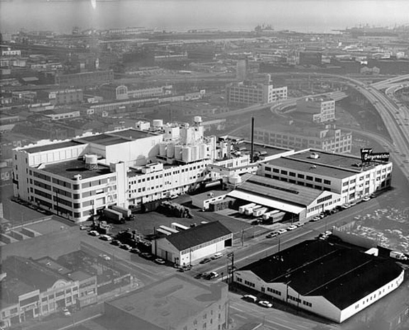 Burgiemeister Brewery in 1964, later Falstaff Brewery, at 470 10th Street, site today of Costco.