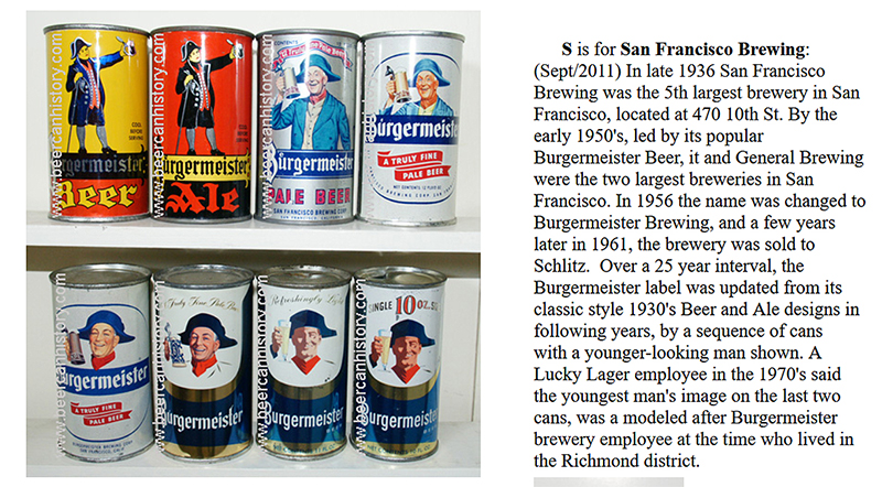 Burgiemeister beer cans from 1930s era when the brewery at 10th and Harrison was the 5th largest in San Francisco.