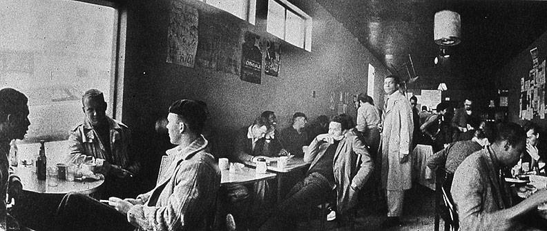 The Co-Existence Bagel Shop, see in this 1958 photo, was a combination deli-eatery hangout that Bob Kaufman wrote about in "Bagel Shop Jazz."