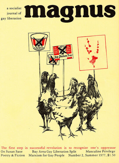 This is the second of what we intend to be a continuing series of examples of political practice. In Magnus #1, the article "On Our Identity as Faggots" laid the basis for an anti-imperialist understanding of gay liberation. The following article explains how that understanding can be used to build gay liberation organizations.