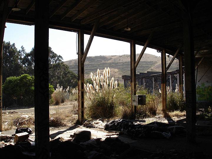 Old Southern Pacific roundhouse, long abandoned, in Bayshore train yard, 2010.