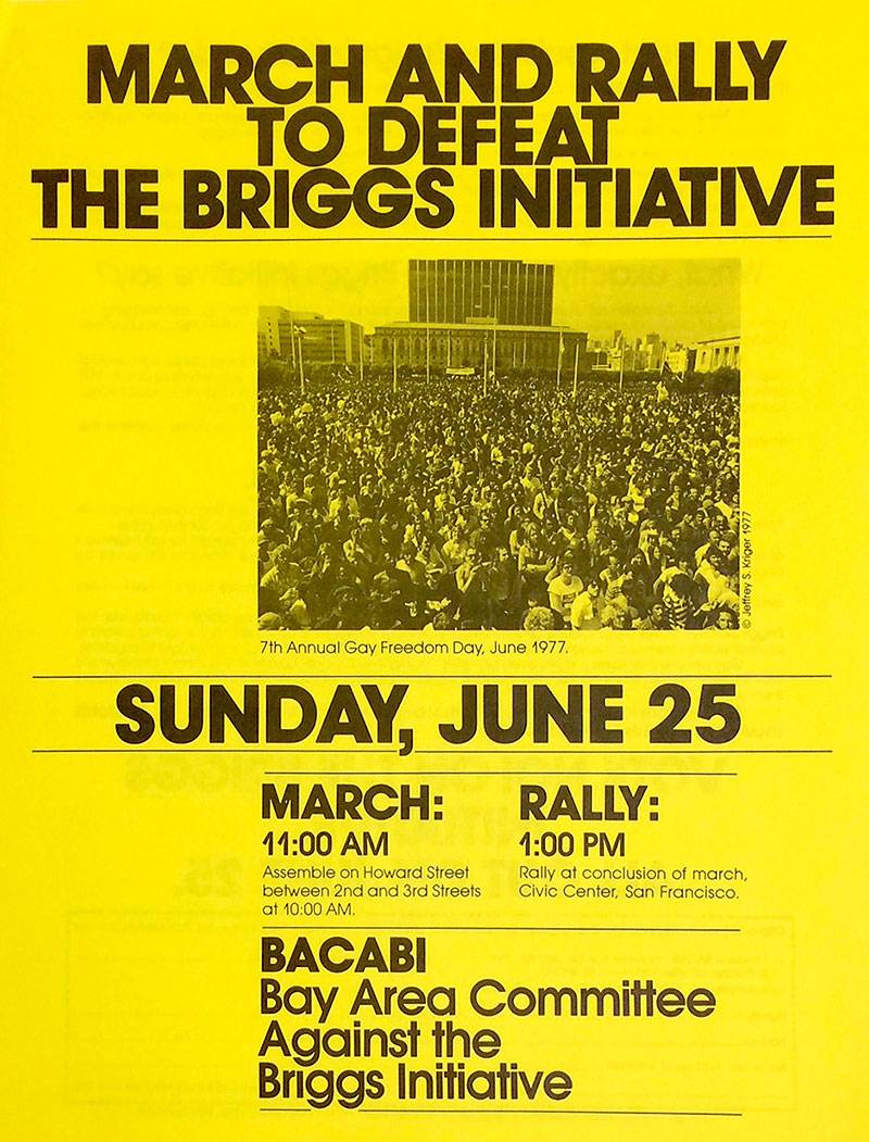 A combination of the activism and BACABI’s work won it for us. There was no internet in those days. Everything was communicated by phone. On Election Nights you would be in a place and you’d write the vote total number in chalk and then erase it. On Election Night November 7, 1978, the early results for the Briggs Initiative were looking terrible and it seemed like it would pass. People who had put everything they had into this thing were crying. I said, “oh fuck.” Then the results came in from LA County. It was a total miscalculation on the right-wing side and we won big, 2 to 1.