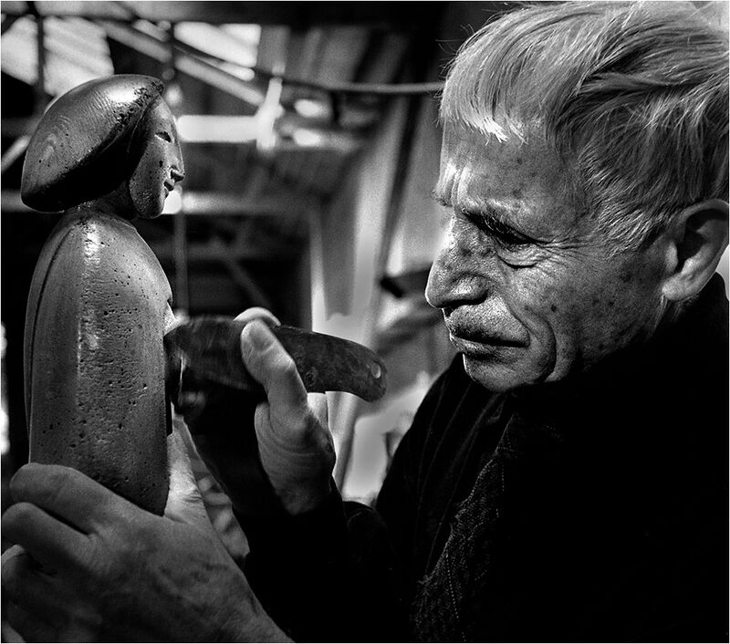 Benny Bufano in his workshop, March 24, 1968.