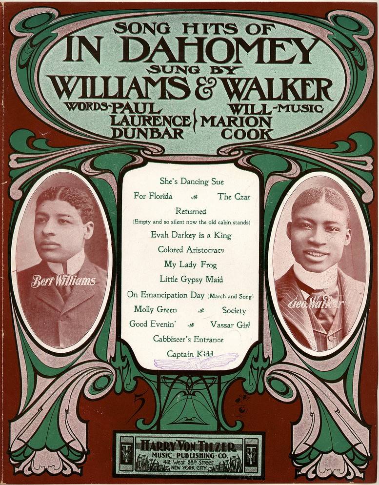 [Bert] Williams and [George] Walker were not only tremendously successful, they were racial pioneers. In their subtlety and humanity, the characters Williams and Walker played went beyond the crude racist stereotypes that had hitherto constrained black performers. Walker asserted that their knowledge of Africans was partly responsible: “I have no hesitation in stating the departure from what was popularly known as the American ‘darky’ ragtime limitations to native African characteristics has helped to greatly increase the value of the black performer on the American Stage.”