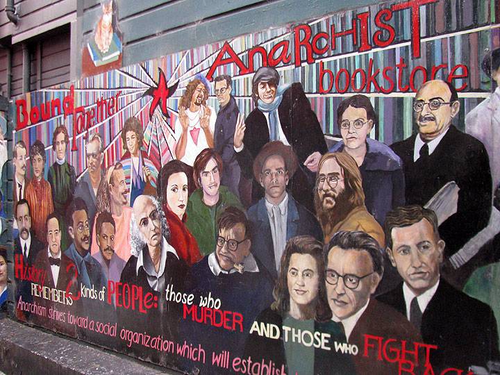 In 1976, during the heyday of the collective and cooperative movement here in San Francisco, a group of people who wanted to provide books that could be used to remake and transform the urban landscape into a more human place came together and pooled their resources to start Bound Together Bookstore. Each one chipped in $50 and with the money rented a former drug store at Hayes and Ashbury Street and began stocking it with books of poetry, urban survival, social criticism, vegetarianism, holistic health and small press titles. Couches and chairs were provided for people to hang out. Soon the store became a nexus for a radical, visionary community here in San Francisco. After a few years the old and new members of the store began to realize that there was a name, history and practice for what they were trying to do as a collective bookstore: Anarchism. With its emphasis on non-authoritarian collective action, a radical critique of economic, sexual and social relations and the idea of remaking a new society in the ruins of the old, Anarchism became a collectively held idea of what we were trying to achieve. In 1983, when the store moved to Haight Street, we agreed to change our name to Bound Together: An Anarchist Collective Bookstore.