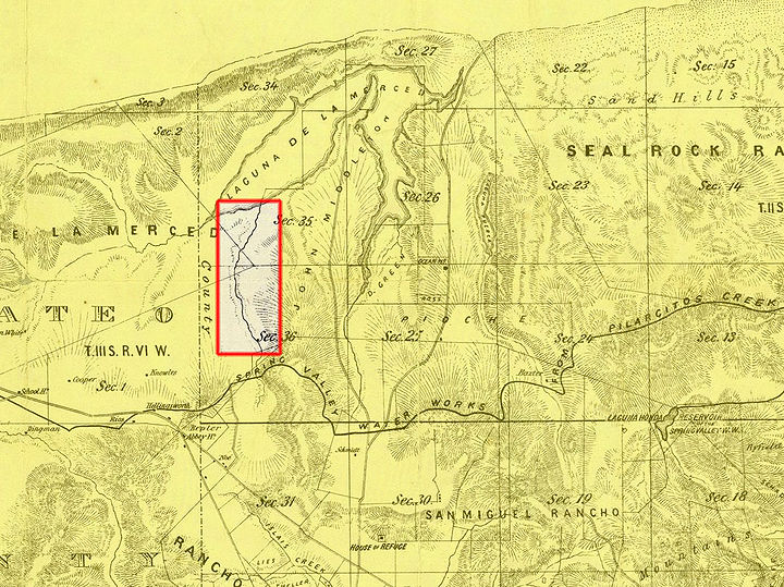 1861 Wackenruder map of gully that later becomes Brotherhood Way.
