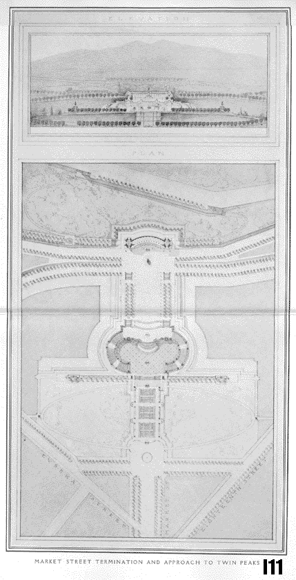 Burnham's plan gave extensive treatment to streets, parks, and views, but other elements were either missing entirely or mentioned only in passing. He planned parks on the assumption that San Francisco would eventually have two million residents, but said little about planning housing. "The residential districts," he noted cavalierly, "develop as necessity demands." His only attention to the quality of housing focused on appearances; he suggested planting trees and vines to cover up what he considered "dreary stretches of inharmonious architecture" and "incongruities of facade"--apparently a reference to San Francisco's then-old-fashioned, but now-esteemed, Victorians. He devoted less than two pages to the economic life of the city, limiting himself to summarizing existing patterns and likely extensions of them, but presented no real planning for the city's economic future. All in all, his master plan was not economically feasible, not practical, not even very original. Monumental in its assumptions and objectives, however, it may be best understood as a lesson in both beauty and order.