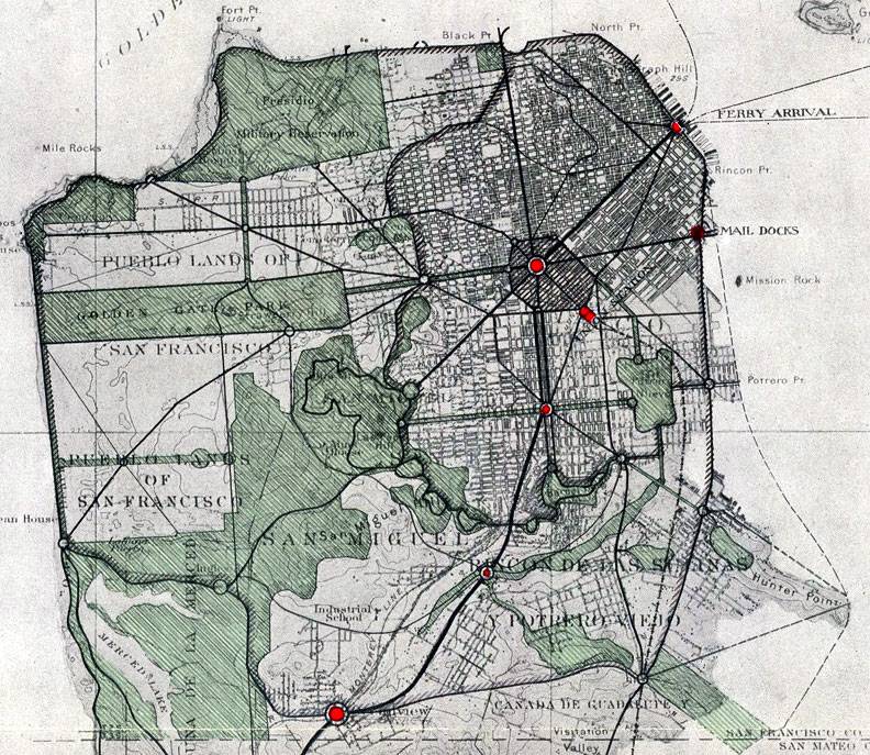 Prior to the 1906 fire, the implementation of the plan had languished because of its cost, its fifty-year time frame, and the need to put massive tracts of land under public control. The earthquake and fire renewed hope for the Burnham plan: Sup- porters saw in the rubble and ashes a chance to reinvigorate interest and debate. A public information campaign urged San Franciscans to approve the project, but the plan never found the necessary popular and political support. According to historians William Issel and Robert Cherny, “[n]either the strongest supporters of the plan nor its staunchest opponents would agree that city government ought to exercise the sweeping powers over private property necessary for the implementation of a comprehensive city plan.” Without the implementation of the Burnham plan or government housing programs, private developers and landlords controlled the shape of housing and urban development, and in the process they left substandard housing across the city.(11)