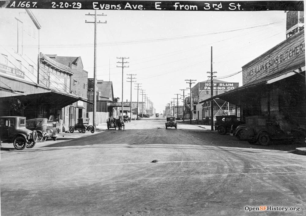 3rd & Evans, in the heart of today's Bayview neighborhood, was a brackish marsh and home to SF's second "Butchertown" until it was filled in the post-WWII era. This photo is dated January 11, 1921.