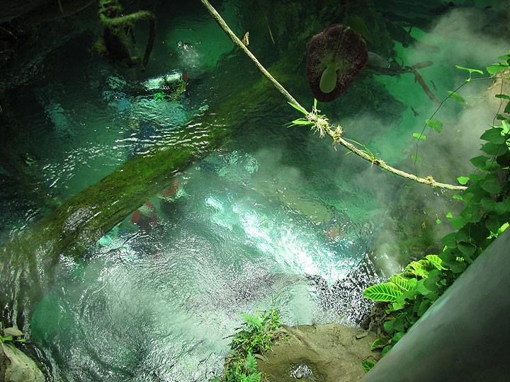 Looking up through the same fish tank from the pedestrian tunnel beneath it.