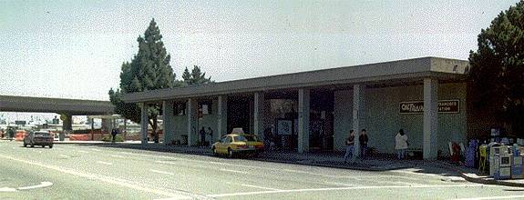 The 4th & Townsend Caltrain terminal, as it looked until its late 1990s makeover. (A block away at 3rd, there once stood a beautiful Spanish Mission style station, in the days when steaming locomotives brought thousands into the city every day.) Note too, the stump of Interstate-280 that dead-ended at 4th Street in the background of this photo.