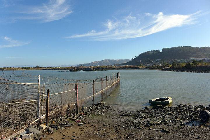 View south across Yosemite Slough towards former stadium site, August 2015.