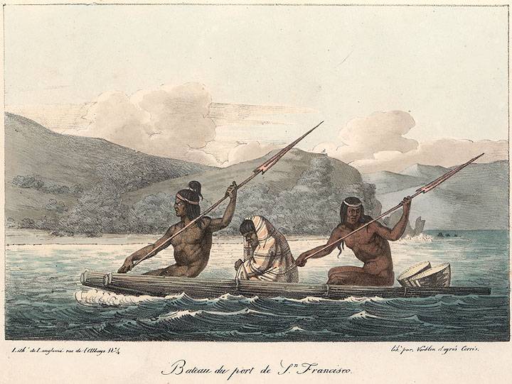 Painting by Louis Choris of local transport on the bay.