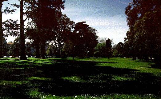 Former roadway through the Panhandle is now a series of grassy meadows approaching the park.