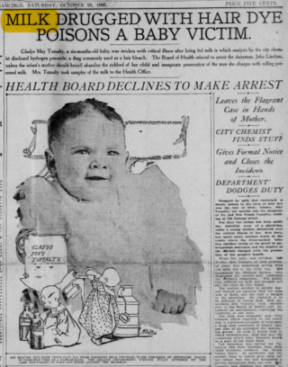 “Milk Drugged With Hair Dye Poisons A Baby Victim”. San Francisco Call, October 1905.