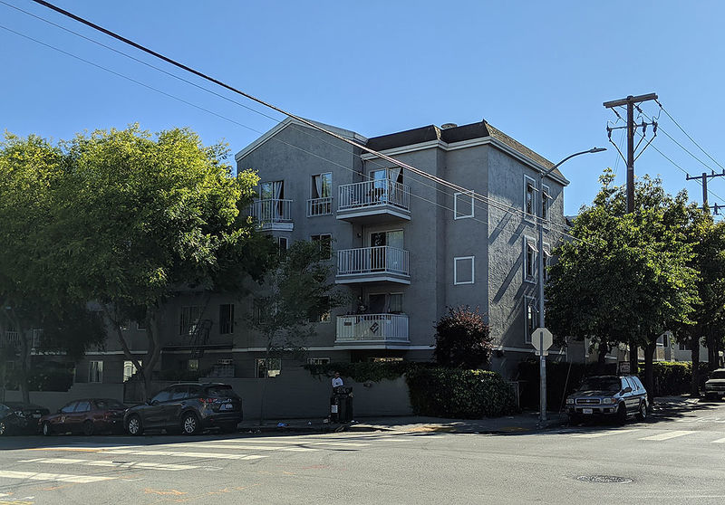 Same view of 26th and Folsom, May 2020. The site is occupied by a predominantly Section 8 subsidized low-income apartment building.