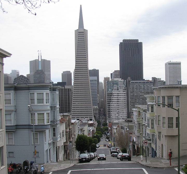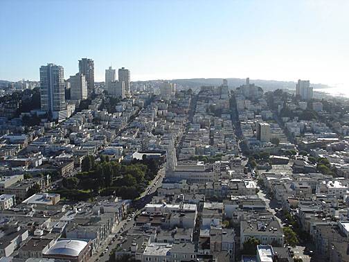 Westward with Washington Square Park in foreground, Russian Hill directly across