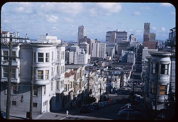 Different angle of same view down Montgomery southward from Telegraph Hill, May 23, 1953.