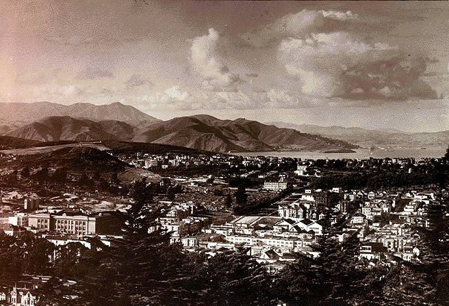 Looking northwest from Buena Vista's peak, circa 1913. Lone Mountain is first hill at left, then the Presidio, the Marin Headlands, and finally Mt. Tamalpais.