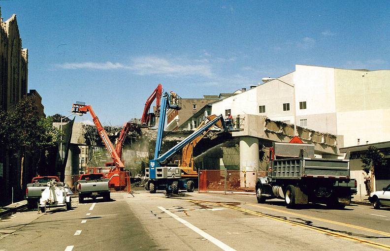 In the meantime Caltrans gave the debate added momentum in 1995 and 1996. Just as progressives pushed harder for removal and conservatives pushed back, Caltrans circulated an internal memorandum stressing that the freeway segment from Mission Street to Fell Street was in danger of imminent collapse.(25) The memo urged Caltrans to immediately under-take a complete rebuilding or retrofitting of the freeway from Mission to Fell, irrespective of the more deliberative planning process then under way. It warned that the upper deck of the structure would collapse in the event of an earthquake and that the probability of another earthquake occurring was high.