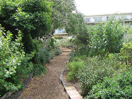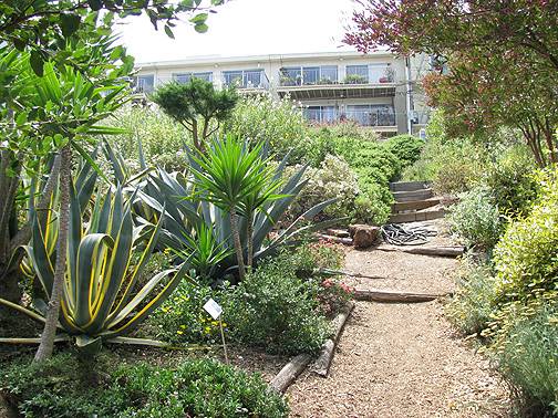 The Seward Street Mini-Park has drawn children (and adults!) to its slide for nearly thirty years. The upper part of the land, though, remained a weed-choked vacant lot until quite recently, when a new generation decided to take matters in hand. In the summer of 1995, area residents held a community meeting and decided that a showcase for California's diverse plant life would be more appropriate on this steep hillside than having individually-gardened plots. That fall, with the help of the San Francisco League of Urban Gardeners (SLUG) and several very dedicated City staff, they began the task of creating the California native plant garden at the upper end of this community treasure. At seven years old, the garden is really coming into its own.
