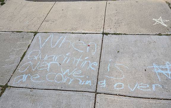 Chalked greeting from one kid to another in front of their house in Noe Valley.