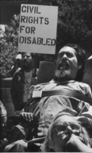 “In ‘70 Ed earned unofficial honors as High Flying Transcontinental Frog Breathing Champion when he flew 3000 air miles from the Bay Area to Washington DC – with no mechanical respiratory support – to advise on the distribution of anti-poverty funds used to create the Physically Disabled Students Program.” (Palames)