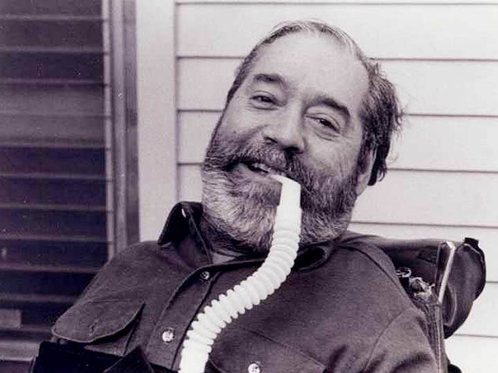 Ed Roberts, described as the “father of independent living,” was the disability rights movement’s first major spokesperson. His mother Zona conceived him during her senior year of high school, briefly contemplating abortion. She would later joke that Ed graduated from Burlingame High School twice. Born in 1939, Ed grew into a tall young man and passionate athlete. When Ed was 14, Zona’s four boys fell ill, Ed most severely. While 90% of people affected by the poliomyelitis virus show no symptoms and act as carriers, about 5% will get mild flu symptoms. In 1% of those with polio, the virus leaves the intestinal tract and attacks the motor neurons of the spine. Ed, after being laid up with a headache, sat up in the car on the way to the hospital and walked in. The next day the polio diagnosis was confirmed by spinal tap, and the painful paralysis progressed quickly through Ed’s whole body. The year was 1953 — two years before Salk invented the polio vaccine.