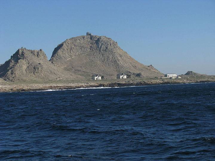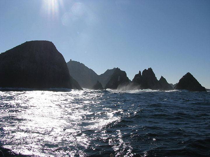 Farallones Islands from the northwest, 2007, showing how treacherous and difficult accessing the islands can be.