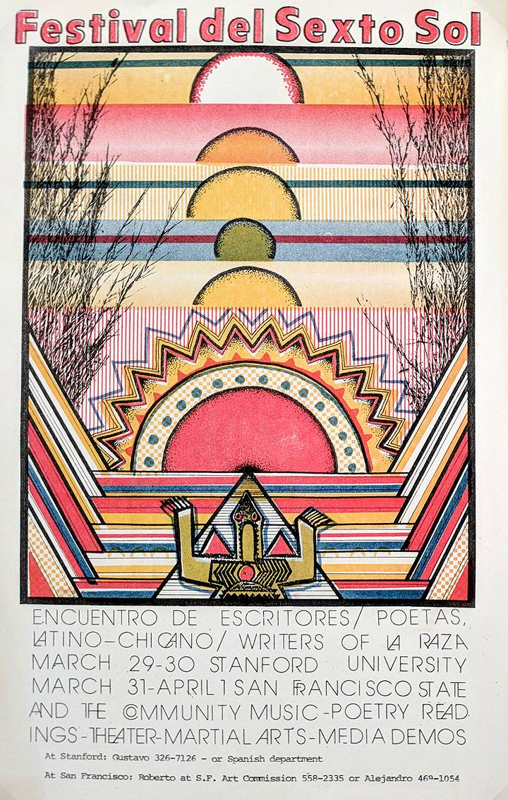 Alejandro and Roberto had met with Stanford University supporters, Fernando Alegría and Jean Franco, various student organizations headed by MECHA and had agreed to hold the Sexto Sol event at three sites during March 30, 31 and April 1: Stanford, San Francisco State and the Palace of Fine Arts in San Francisco overlooking the Golden Gate Bridge.