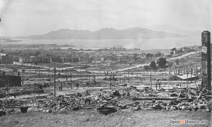 View of the ruins from Nob Hill, including the Beplers’ route down Van Ness to Fort Mason.