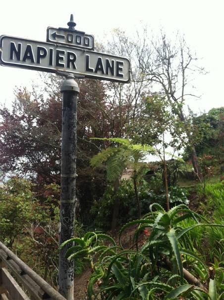 A look down Napier Lane, a woodplanked "road" off of the Filbert Steps, March 2013