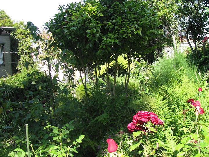 In creating her garden Grace Marchant was very casual about property lines. One large section extended into the yard of a cottage whose owner wanted the land back in 1989 to build a larger house. When a permit for construction was granted, neighbors founded Friends of the Garden and took the issue of its preservation to City Hall and the Trust for Public Land. The Trust developed a plan to buy the cottage property and resell it with deed restrictions protecting the garden. To cover the difference between the purchase price and the much lower resale value of the restricted property, donations came in from garden lovers. With additional gifts from local corporations, foundations, and benefit events, the Trust exceeded its fundraising goal, enabling it to buy the cottage and create an endowment to support the garden. Friends of the Garden have since taken over the maintenance of Grace Marchant's gardening vision. (excerpt from Gianni Longo in A Guide to Great American Public Places, courtesy of the Telegraph Hill Dwellers Association)