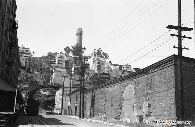 View from Filbert and Battery west towards Filbert Steps on Telegraph Hill, December 14, 1952.